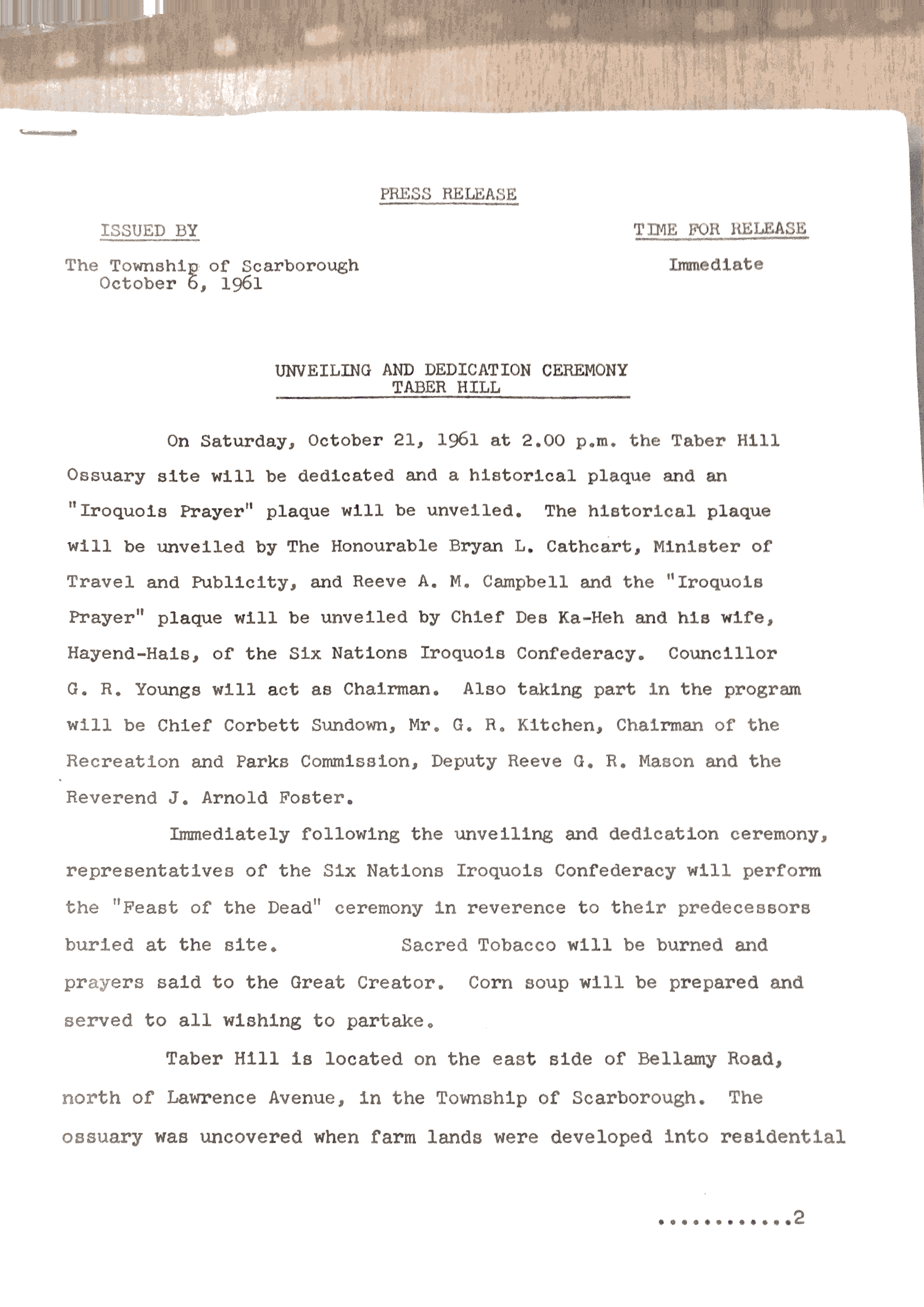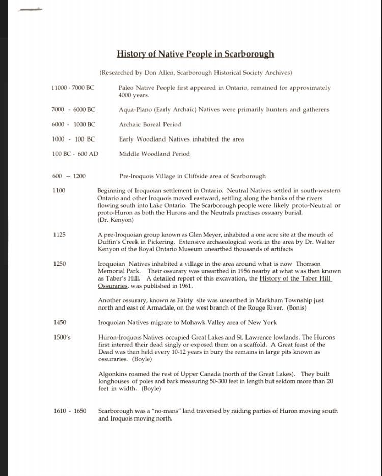Link to the Archival Guide of available materials on Indigenous History at the Scarborough Archives