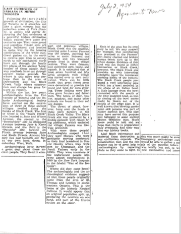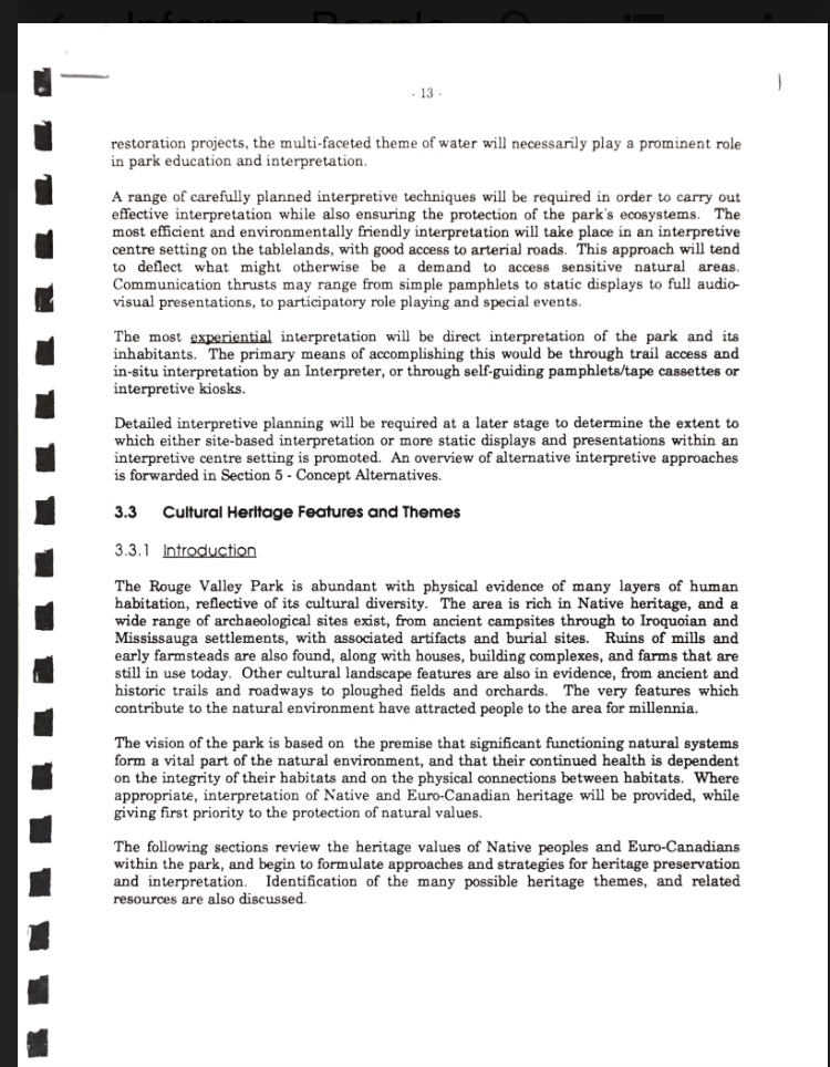 In partnership with the Scarborough Archives, UTSC student volunteers have created an archival guide focusing on pre-settlement Indigenous History. In conjunction with the Archive Guide, students have also catalogued all of the material pertaining to Indigenous history. The Pre-Settlement Indigenous History Collection includes information on archaeological sites, educational material and other research materials. The creation of an archival guide not only preserves the available material on pre-settlement Indigenous history but also increases accessibility to this information, as well as ensuring the preservation of this material for future archive users.